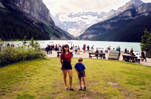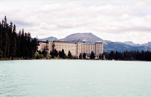 Это была суббота, начало long weekend, поэтому множество калгарийцев двигались в сторону гор. Мы же держали путь с первой остановкой на знаменитом озере Луиз (Louise Lake). Вода в нем ярко зелено-синего цвета, так как питается от ледника. Виды там действительно потрясающие: зажатое между двух скал изумрудное озеро с ледником в дальнем конце, ползущим к воде - все это, к сожелению, на фотографиях почти не видно. Сложная фототехника и та пасует перед великой силой природных явлений.