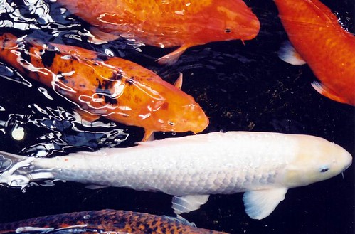 В ручьях лениво плавали большие оранжевые рыбы. Я потрогал одну из них пальцем - тугая холодная плоть. Рыба испугалась и вильнула в сторону. Я испугался что она испугалась и отдернул руку.