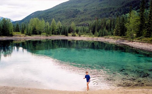 Вспомнили про гостиницу на Rogers Pass и решили ехать туда. По дороге опять делали много остановок, любовались горами, купались в озерах. Вспоминается интересное место Spiral tunnels. Суть его в том, что когда строили ж/д через горы, местечко около Rogers Pass оказалось таковым, что рельсы шли через него с наклоном больше 5%, так что когда поезд шел в гору, приходилось цеплять по три-четыре паровоза, а передний паровоз возвышался на 5 метров над последним вагоном. Вобщем, это все было трудно и опасно. Тогда инженеры придумали такой ход: удлиннить путь в два раза, уменьшив наклон в те же два раза. А где это сделать в горах? И сделали два кольцевых тунеля прямо в горе: поезд заезжает в такой тунель, а выезжает гораздо выше из другого его выхода. Вообще, поскольку хайвей часто идет паралельно железной дороге, видишь много ухишрений и проблем, которые пришлось преодолеть строителям.