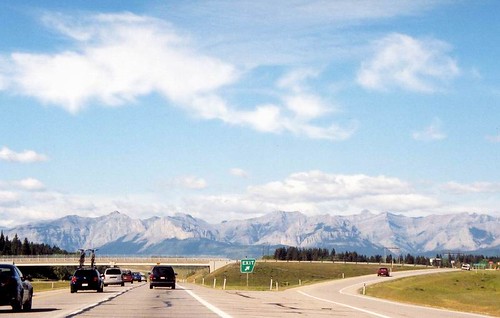На следующий день мы встали пораньше часов в 10 и отправились в обратный путь. Скалистые горы, на западной стороне которых расположен Ванкувер начинаются примерно в ста километрах западнее Калгари, поэтому картинка была как на этой фотографии.