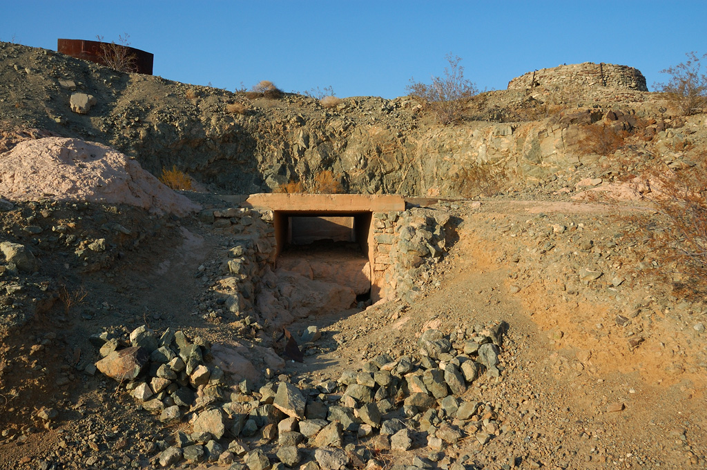 В конце дороги обнаруживаются старые постройки, видимо, что-то связанное с добычей полезных ископаемых