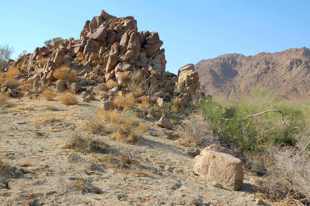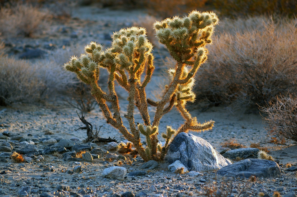 Сан-Диего, день n-ный. Ездил сегодня в Joshua tree NP. В прошлый раз мы его мельком глянули, теперь я его попытался исследовать поосновательнее, даже забрался на одну из местных горок. Из машины вылезаешь - как дверь в сауну открываешь. Такое там пекло! Но красиво... суровое очарование пустыни.