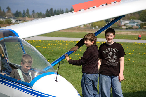 Я смотрю и завидую им. В 12 лет полетать в настоящем планере и поуправлять им - я о таком мечтал бы. Хотя, если честно, лет в 10 я уже многократно летал на месте 2-го пилота самолета АН-2, помню даже, летчик убирал руки со штурвала, чтобы я подержал самолет в своих руках. Но то был аэродром ДОСААФ, где работали мои родители, знакомый летчик, который поднимал парашютистов. Место у него в кабине пустовало и поэтому он часто брал меня полетать. А мог бы обычный школьник сесть за штурвал? Но речь не обо мне.