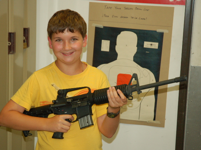 Ну какой мальчишка откажется от такой фотографии! В тире с винтовкой М-4.