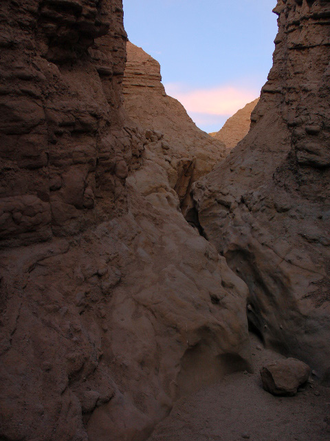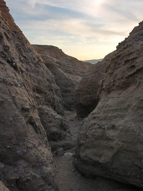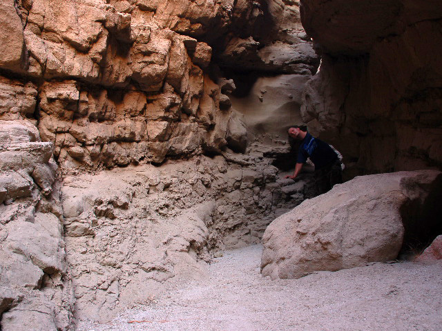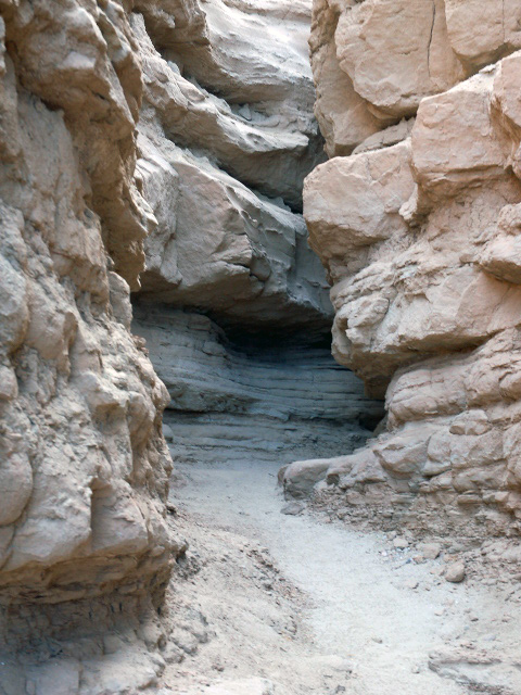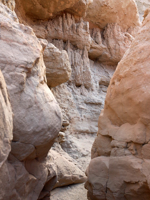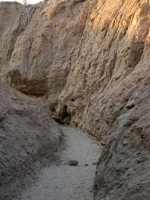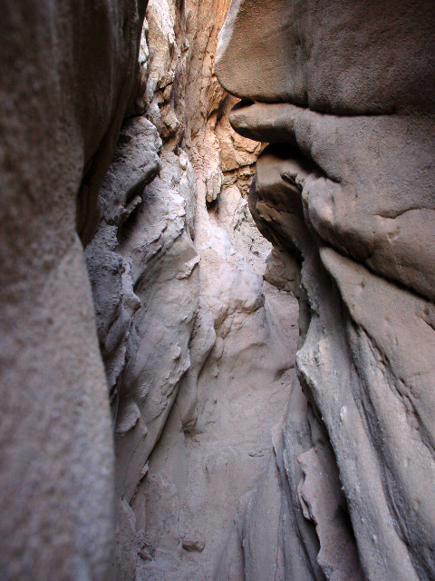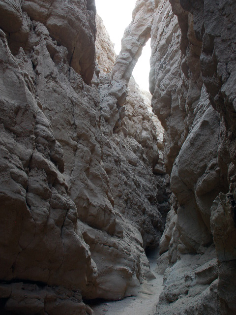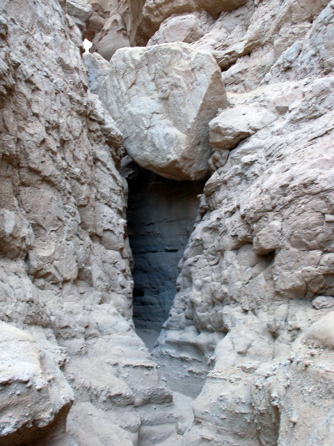 Take Hwy 78. 2.4 km after Borrego Springs rd. turn left on unnamed gravel rd. Keep left on fork. The parking is where the road turns sharp left. The slot is on north-west side of the parking, and goes west.