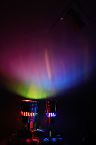 Самое сложное оказалось найти цветные лампочки. Да, можно гирлянды, но хочется поярче. Или вот в Home Depot продают цветные, но у них внутри люминисцентные, а они не имеют градаций яркости, только on/off. Выход нашел такой: раскрасил обычные лампочки перманентными спиртовыми маркерами. Посмотрим, сколько проживет.
