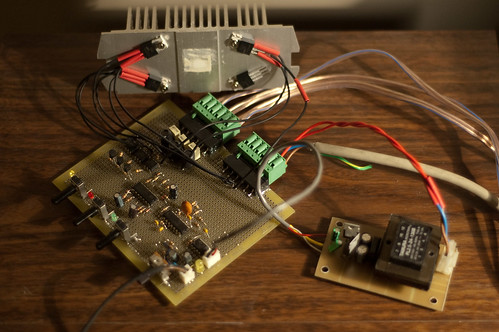 Добравшись наконец до дома, собрал цветомузыку, как когда-то в детстве. Только чуть посложнее, да и элементная база не стоит на месте. Вместо классических тиристоров КУ202Н использовал симисторы, управление через оптосемисторы. Вход - с микрофона, по-моему гениально. Никаких подключений и заоодно гальваническая развязка.