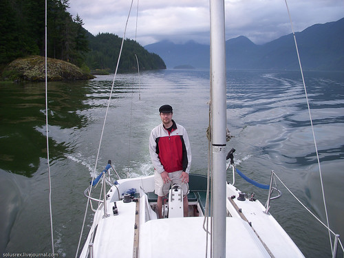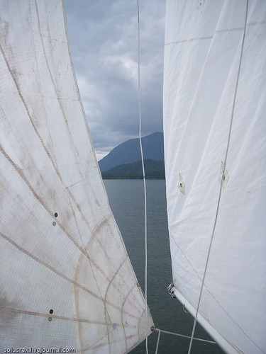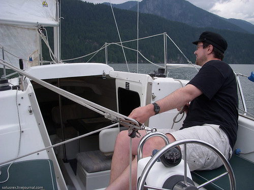 Бывалый (2-й выход на воду, шутка ли!) шкипер Captain K управляется с парусами.