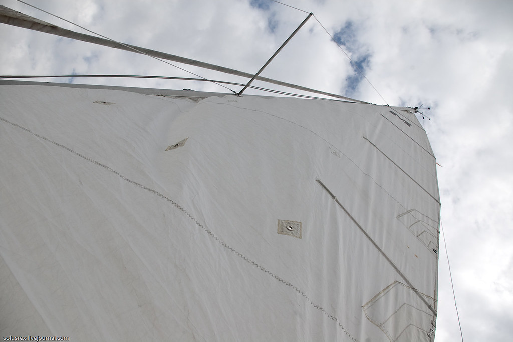 К занялся рыбной ловлей и не без успеха: выловил обрывки каких-то придонных водорослей. Дмитрий командовал экипажем, состоявшим из него и меня, сидевшим на руле. Крепкий ветер кренил судно иной раз настолько, что в каюте со стола падала посуда.