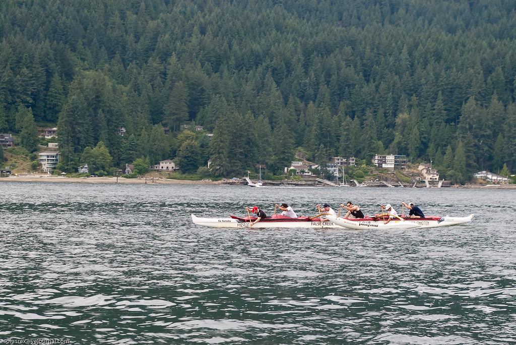 Встречным курсом прошла какая-то эстафета на традиционных лодках