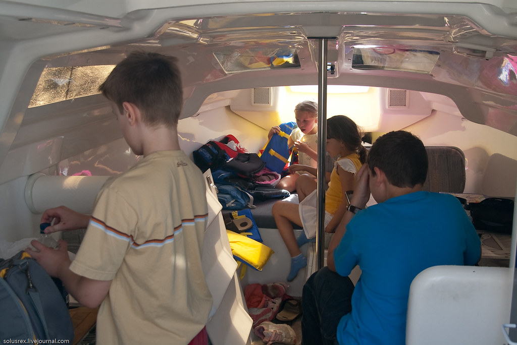 Дети сперва устроились на палубе...