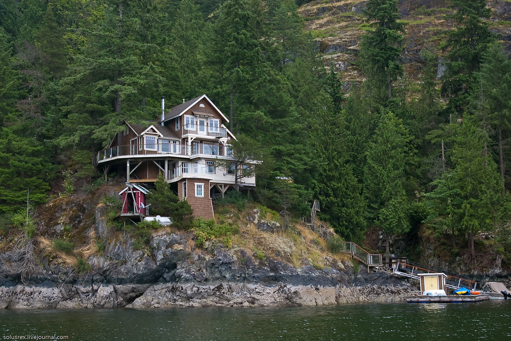 А это чья-то дачка. Доступ к ней только по воде.Примечательна красная построка, в которую можно забраться только свернув шею
