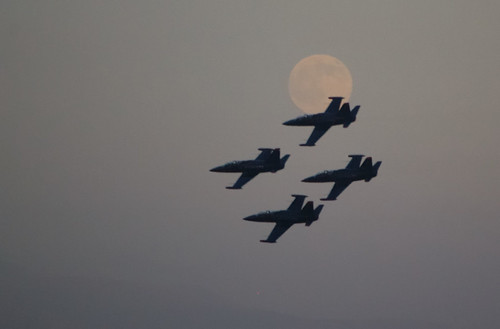 Между тем темнело. Взошла огромная Луна. Как раз пилотаж выполняли американские Patriots на L-39