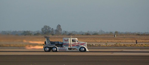 Из интересного, показали грузовик с тремя реактивными двигателями. Как было сказано, это самый быстрый грузовик в мире (и самый бестолковый, прим. автора), он развивает скорость под 400 миль а час. Тормозит с помощью парашютов.