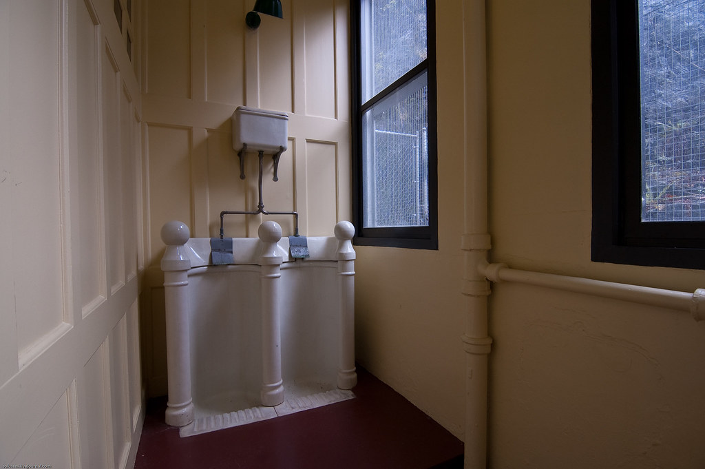 А это туалет-музей для рабочих. Без деления на Мэ и Жо. Интересно, если там работали женщины, они тоже пользовались им?