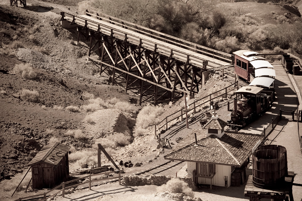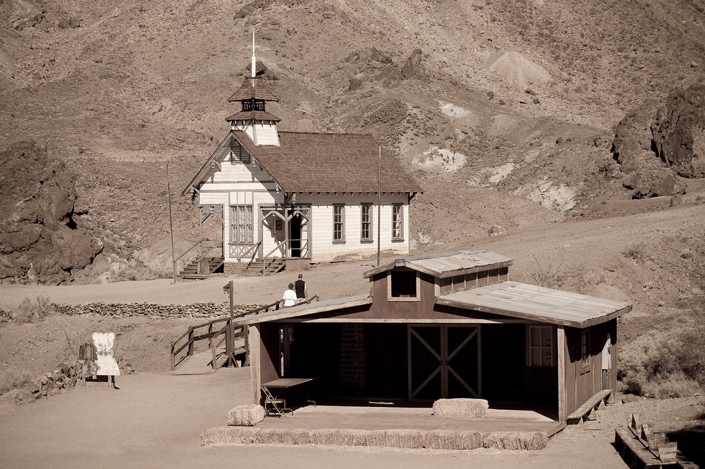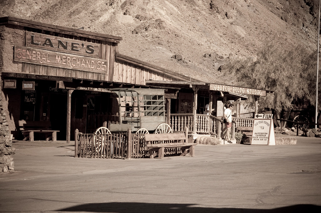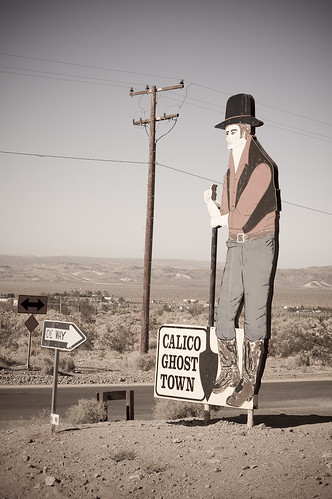 Один из таких городков - Rhyolite, о котором я рассказывал какое-то время назад, а вот другой, называется он Calico и судьба у него иная. Ему повезло оказаться недалеко от 15-го хайвея, который соединяет Лос-Анжелес и Лас-Вегас. Редкий турист не заеедет в него, и потому городишко не умер, но воскрес как птица Рух и превратился в популярный аттракцион "Ghost Town Calico".
