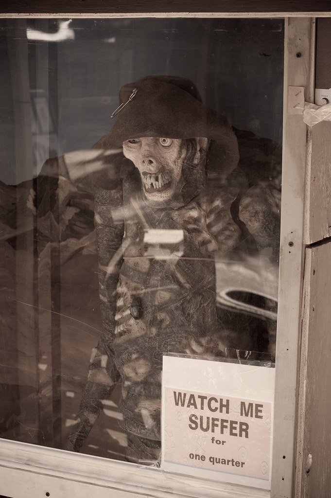 На улице попался развлекательный автомат. За 25 центов можно посмотреть как это существо будет мучиться. Впрочем, морской бой - примерно та же идея, но за 15 копеек