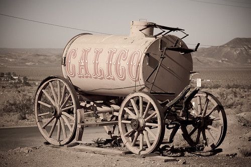 Calico - это один из многочисленных городов-призраков, которых сотни в пустынях Калифорнии или Невады. Обнаружили доблестные геологи медное месторождение в удаленном уголке пустыни, и оглянутся никто не успел, уже открыл свои двери салун, у гостиницы привязаны лошади и цирюльник бреет клиента в дверях своей лавочки и шериф начищает свою звезду, сидя у добротно выстроенной тюрьмы. Но вот добыта последняя вагонетка руды и "погасли свечи, закончен вечер". Город вымирает, куда ему без жителей.
