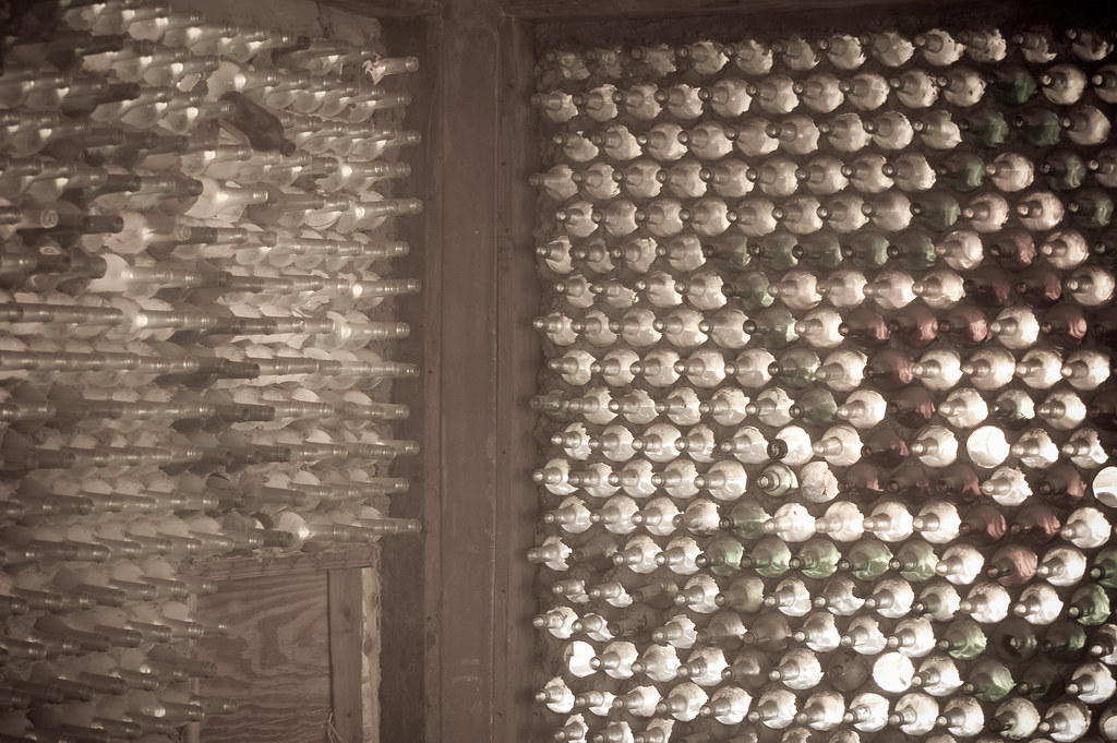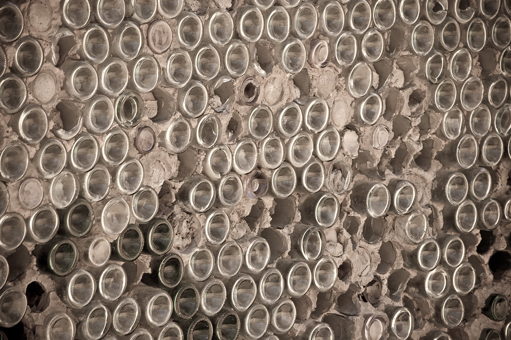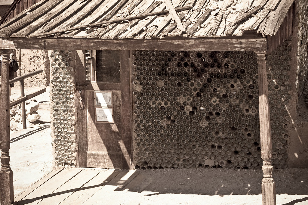 Как водится, есть и свой домик из бутылок, ибо в таких городах бутылок девать было некуда, их явно не принимали. Или принимали здесь