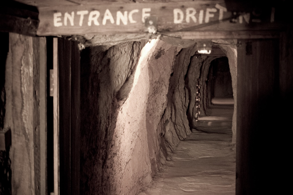 Потолок выглядит не очень надежным, но каску одеть не заставили, значит, безопасно