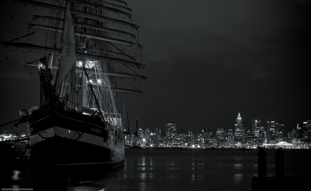 Место для стоянки выбрано удачно: в северном Ванкувере, так что корабль очень эффектно смотрится на фоне Даунтауна. Думаю, интернет переполнится похожими фотографиями.