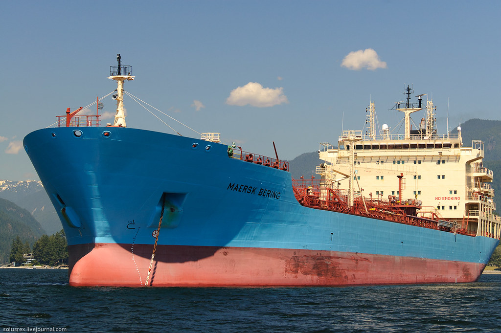 Перед входом в фиорд Indian Arm обычно стоят и ждут своей очереди небольшие танкеры. Один такой "небольшой" танкер вблизи.