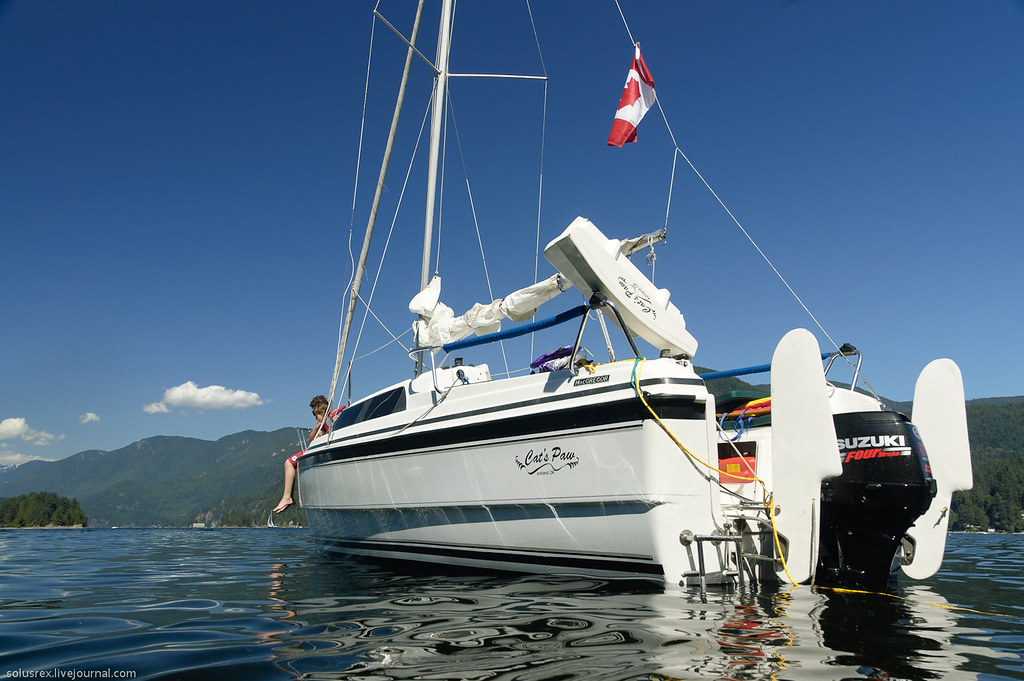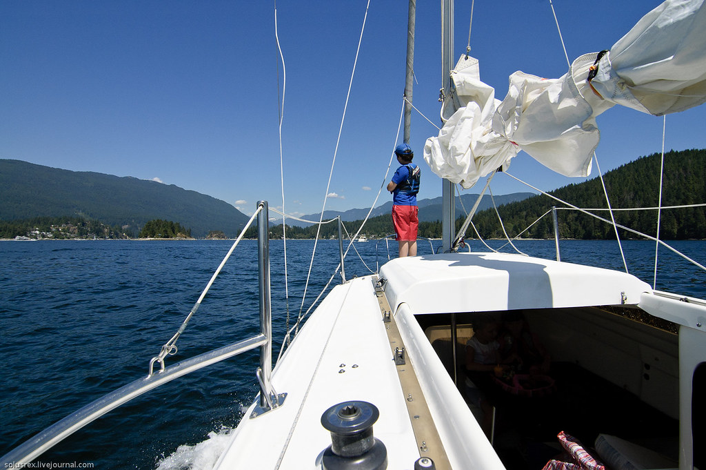 Если в двух словах, то дошли на парусах до самого конца Indian Arm, там переночевали, обратно - малая часть на парусе, остальная - на моторе.
