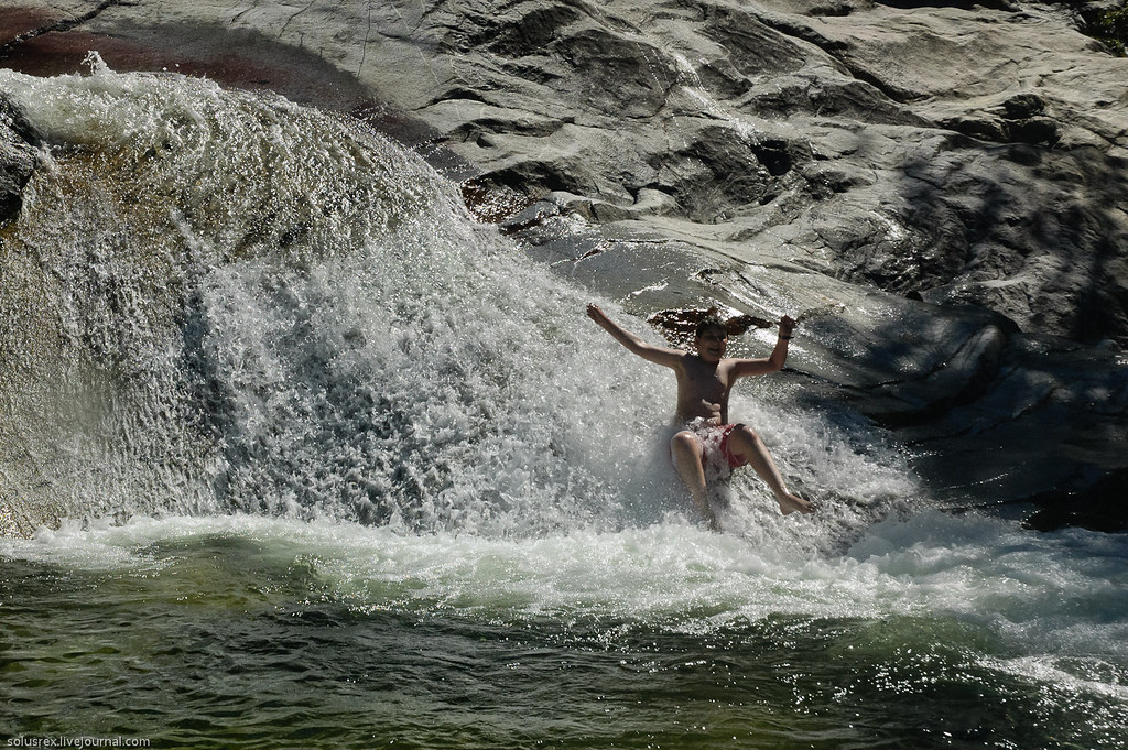 Оказывается, по водопаду можно кататься как по водяной горке, правда попу боязно отбить.