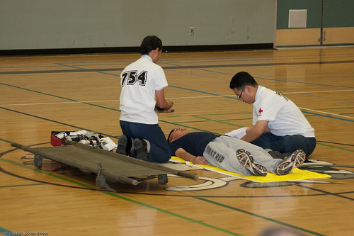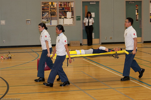 Кадеты демонстрируют навыки оказания первой помощи.