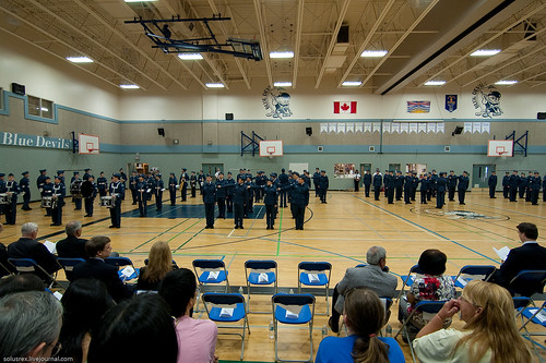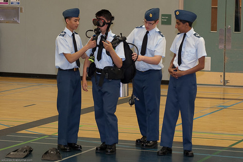 Однако, министерство обороны поддерживает целый ряд кадетских организаций, в которые может вступить любой ребенок от 12 до 18 лет. Официально упор делается, как они говорят, на воспитании хороших граждан, на физической активности и поддержании интереса к тому, чем занимается канадская армия, авиация и флот. Заоодно ребята заранее могут соорентироваться, по им ли служба в армии и хотят ли они служить. Соответственно существует три типа кадетов: авиационные, морские и сухопутные. Наши - авиационные, и это не только теория в классах: летают на планерах и самолетах, выезжают на полевые занятия, где живут в палатках и бегают в армейском камуфляже по лесу, проводят каждое лето несколько недель в кадетский лагерях итп.