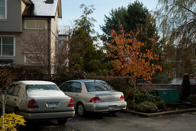 Да, и у нас сегодня выпал снег. Дожили, уже в ноябре снег. Я тут же поехал и сделал давно откладываемое дело - купил цепи на Аутландер.