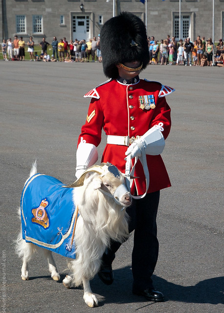 При гарнизоне живет ученая коза. Когда-то ее подарили королеве Елизавете. Это уже третье поколение.