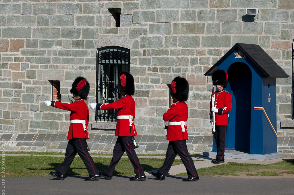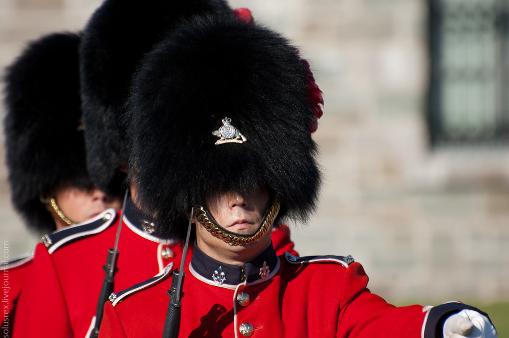 На другой день мы решили осмотреть Цитадель - крепость внутри крепостных стен. До сих пор там стоит гарнизон, солдаты несут службу, так что внутрь пускают только с экскурсией. Экскурсовод держит в кармане рогатку и имеет полномочия застрелить из нее любого экскурсанта, делающего шаг влево или вправо на территории канадского военного объекта.