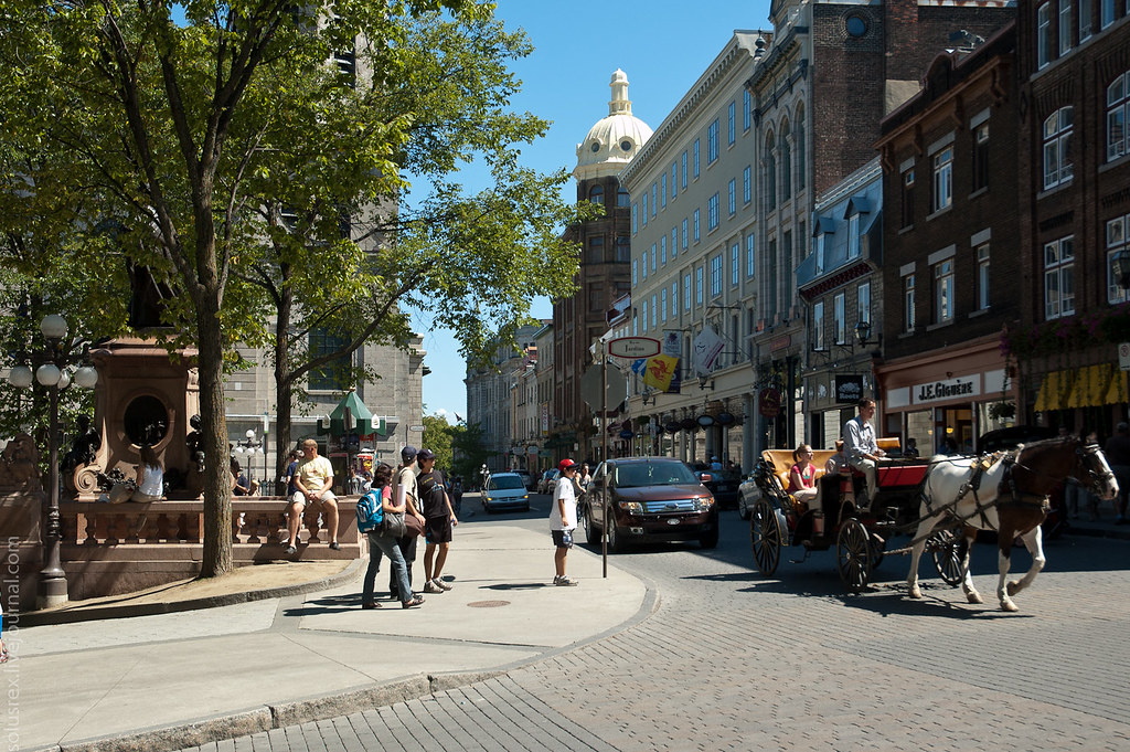 Побывать в Квебеке и не побывать в Квебеке - значит не побывать в Квебеке. Квебек здесь - это город километрах в двухстах на северо-восток от Монреаля вдоль реки St. Lowrence. Основанный в начале 17-го века, это старейший, или по крайне мере один из старейших городов северной Америки. От него ждешь того же самого европейского шарма, и, в общем, находишь его. Во всяком случае, нам он таким показался, мы нашли то, зачем приезжали. Очень хочется вернуться сюда зимой, мне кажется, снег придаст городу особое очарование.