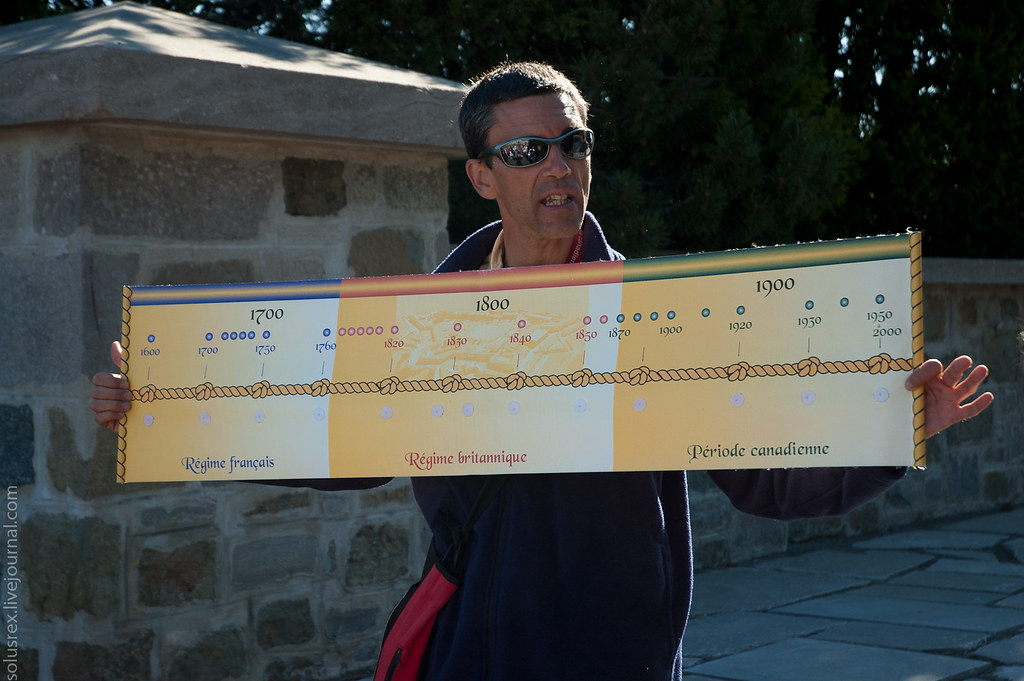 Наш гид. Мне было очень интересно, как он - француз, выскажется относительно захвата Квебека британцами и последующего присоединения его к Канаде до наших времен. Он развернул хронологию и объяснил все просто: сперва были французы, потом пришли британцы, а потом всех сменил канадский народ, то есть мы все. Изящно, ничего не скажешь :)