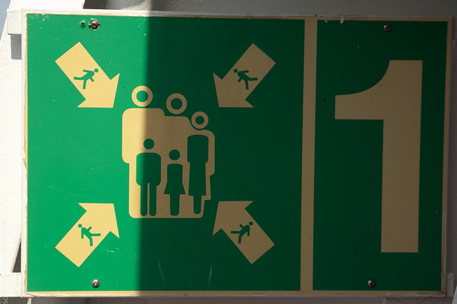 На пароме были такие загадочные картинки. Честно скажу, я не одолел смысла нарисованного. Что-то связанное со спасательным плотом странной формы, все должны бежать к нему и ложиться в каком-то особом странном порядке, думал я.