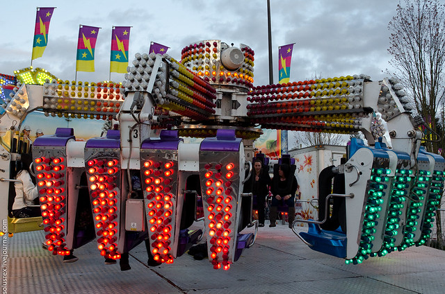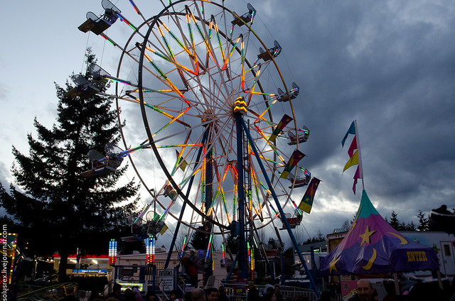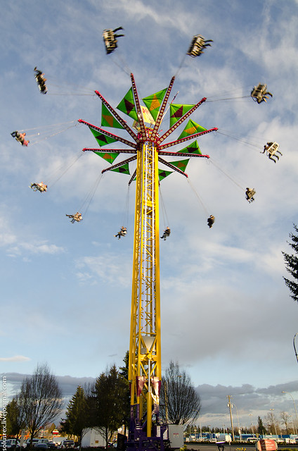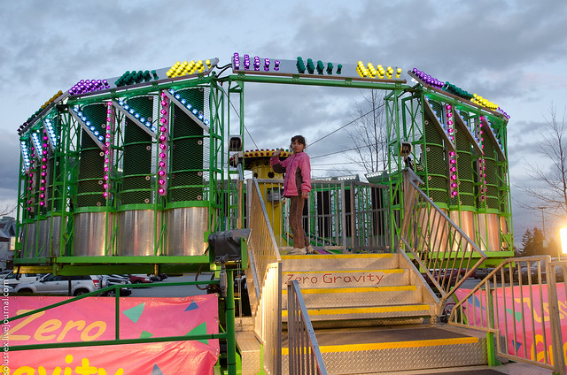 Как обычно, весной на площадку около Coquitlam молла привезли аттракционы. Из нового: карусель, которая поднимается метров на 20 вверх и там крутиться. Остальное - примерно как всегда. Дороговато получается, одна покатушка на той карусели примерно $7.50, но как не испробовать! Ксения отличилась отважным характером и покаталась на всех самых страшных аттракционах, включая те, где вращая, переворачивают вниз головой, трясут и вообще стараются сделать все, чтобы человек не растолстел от съеденных только что сладких пончиков, извергнув их их себя тут же после катания. Впрочем, пончики ели мы, а она каталась.