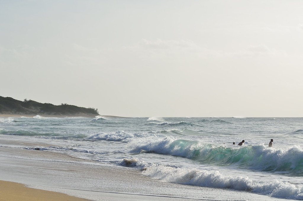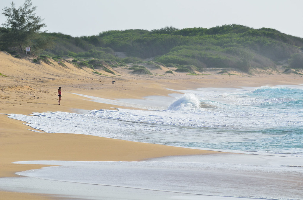 5. Побывали мы и на Barking Sands, точнее в Polihale Park, куда на рентованных машинах в принципе нельзя по причине того, что красивый хайвей кончается у ворот американской военной базы, а дальше идут километров пять в дрызг разбитой грунтовки. Впрочем, мне пришлось по этой дороге проехать 4 раза, потому что накануне этого мы покушали в придорожном кафе Shrimp Station, и я там позабыл свой фоторюкзак. Ладно, что в нем остался D7000, три линзы и две вспышки. Кроме этого там были все наши паспорта. Можно представить, что обратно я летел по той грунтовке не замечая ям. Официант, подавая мне забытый рюкзак, сказал что-то типа "следи за вещами, а то останешься у нас на острове!".