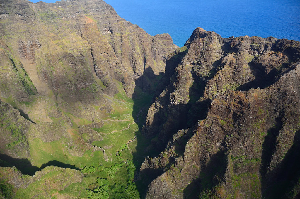 13. Посещение острова не будет полноценным, если облететь его на вертолете. Беглого взгляда на карту достаточно, чтобы увидеть, что с дороги можно увидеть очень немногое. А острову определенно есть что предложить. Мы нашли очень хорошую вертолетную компанию. Те оставили хорошее впечатление, у нас не возникло ощущения, что нас рассматривают как туристов-дойных коров. В итоге мы получили приватный тур на вертолете Робинсон R-44 со снятыми дверьми и летали в общей сложности полтора часа. Пилот охотно выполнял наши просьбы спуститься пониже или подлететь с другой стороны. Взлетели мы из аэропорта города Lihue.