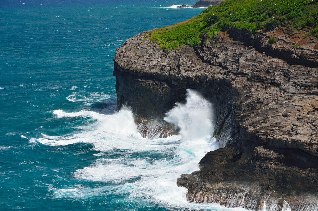 1. На острове, который, кстати, самый старый в гавайском архипелаге и потом успевший как следует сформироваться под воздействием дождей и ветра, есть даже свой Гранд Каньон, только он поменьше и называется Waimea. К нему я еще вернусь, потому что мы посвятили отдельный день чтобы полазать по нему, а пока вот его "устье" недалеко от береговой кромки