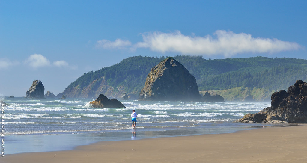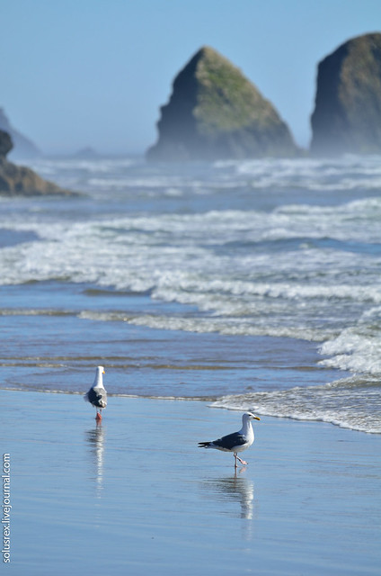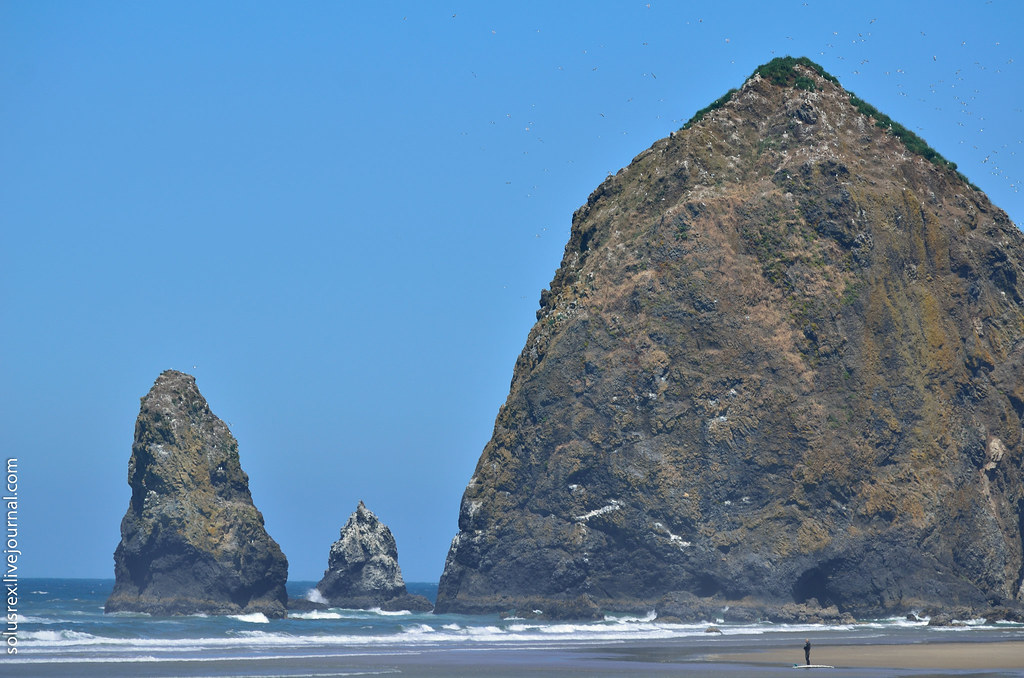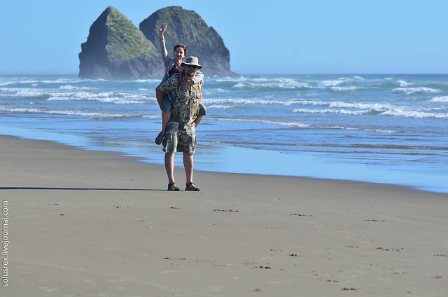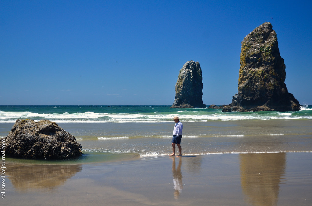 До сих пор в своих рассказах я старался держаться хронологической последовательности по дням, так легче не упустить что-нибудь, но для этого места сделаю исключение. Не хочется растворять его в полсотни других фотографий, оно заслуживает отдельного упоминания. Место это - Кэнон Бич (Canon Beach). Так называется пляж и городок около него.