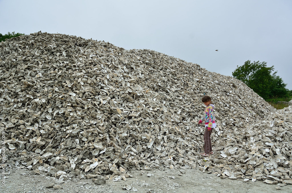 10. Дело к обеду, тем более, что пообедать предполагалось свежими устрицами. Не так далеко от Long Beach расположен населенный пункт Ойстервилль (Oysterville). Мы ожидали кипящий туристами устричный рай, а увидели лишь небольшой поселок, да несколько серых сарайчиков и горы раковин.