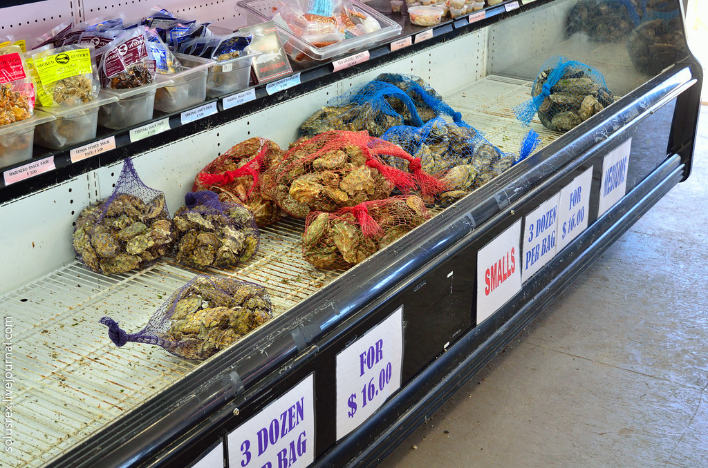 13. На ферме предлагают не только устриц, но и прочую морскую продукцию: крабов, рыбу.
