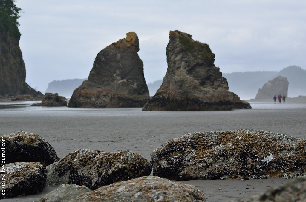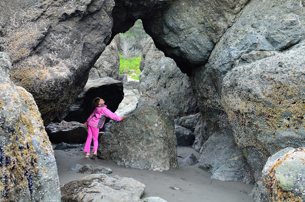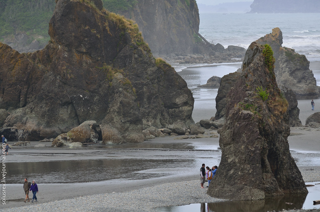 Вот, постепенно двигаясь на север вдоль океана по дороге 101, добрались до национального парка Олимпикс (Olympics NP). Заметно похолодало и стало сыро. На ночь мы устроились в каком-то почти случайном отеле на утесе с видом на море. Отель был явно с претензией, но у них пару месяцев назад сгорел ресторан, и постояльцев крайне не много. Никто из богачей не хочет жить в гостинице без еды, а потому цены снизились в разы. Мы же просто съездили в ближайший городок съесть пиццу, где нам были очень рады - погода не очень, и туристов совсем немного.