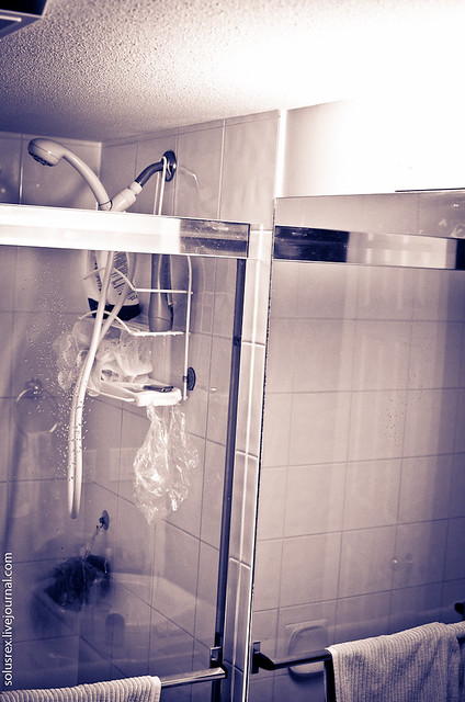 3. У жены сегодня выходной, у детей каникулы, они все еще спят. Чтобы не будить, спускаюсь в ванную комнату на второй этаж. Душ.