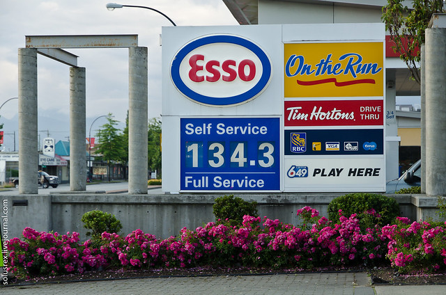 60. Надо будет заправиться на обратном пути. Бензин уже сколько месяцев держится на отметке 1 доллар 30 центов за литр.