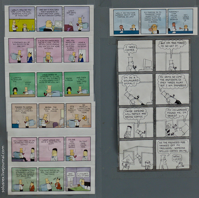 24. На стене - популярные комиксы про инженеров. В данном случае здесь собирается кухонная тематика.