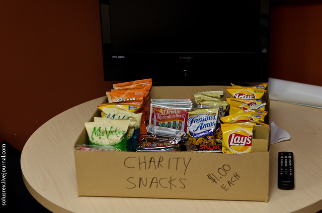 23. А это собирают в местные благотворительные фонды. Доллар за батончик или шоколадку. Вроде мелочь, а из пары сотен человек постоянно кто-то что нет-нет, да и купит, и набираются приличные суммы.