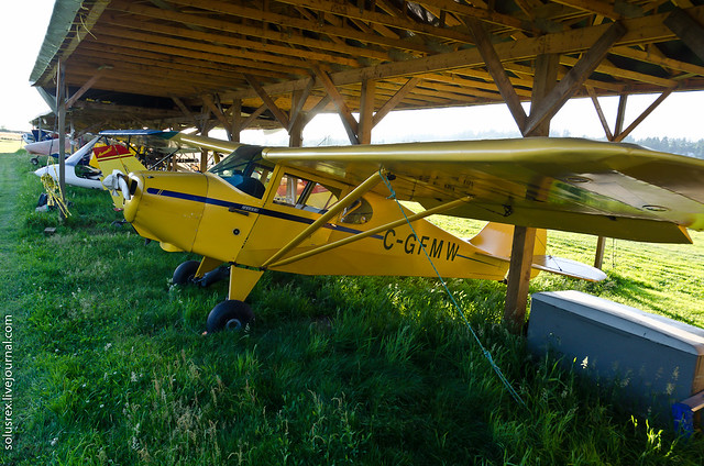 61. Приехал на летное поле. Самолеты здесь стоят под навесами в открытом доступе. Мне рассказывали, что за много десятелетий был только один случай попытки угона, когда два обкурившихся подростка взлетели ночью, пролетели 5км и упали в черешневый сад. Все вокруг было в алом черешневом соке, напоминавшем в темноте кровищу, но они странным образом не пострадали.