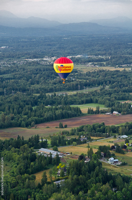 73. Где-то вдалеке видим точку, это воздушный шар. Подлетаем поближе и начинаем описывать круги вокруг него. Нам машут руками, мы машем им в ответ.